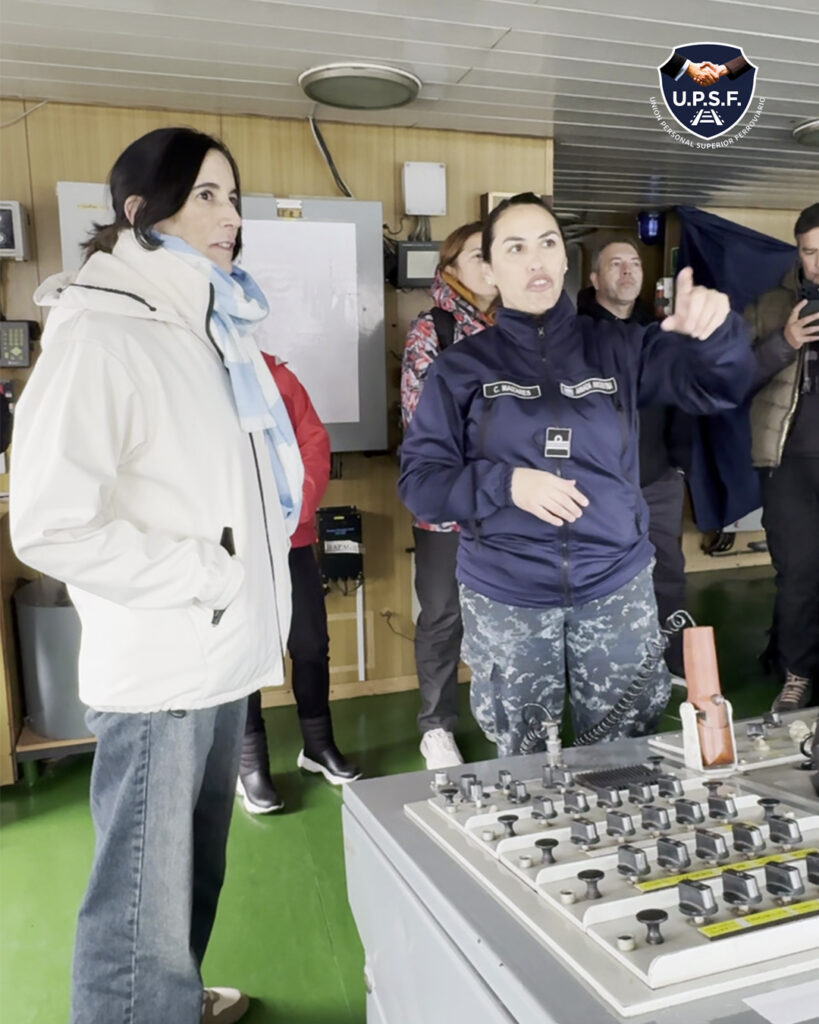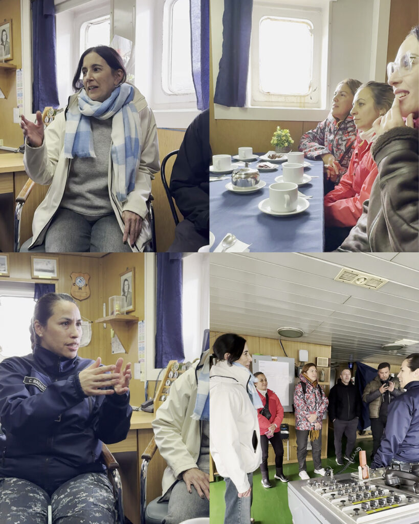 En el marco de esta visita, la Comandante nos contó su orgullo de estar al mando del barco, haciendo apoyo logístico a las bases argentinas en el continente blanco y participando de misiones de búsqueda y rescate en las aguas del Atlántico Sur.
