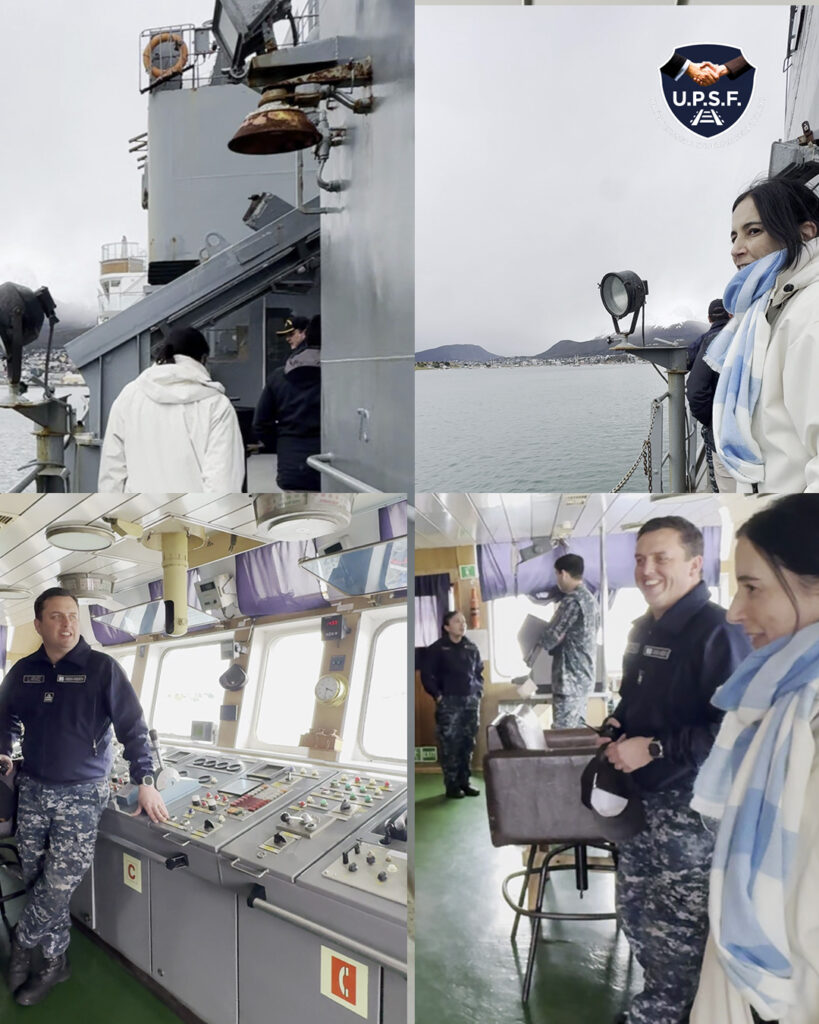 En estas horas, previas a la vigilia del 2 de Abril en la ciudad fueguina de Rio Grande, representantes de la Secretaría de Género de UPSF se reunieron con la tripulación del buque ARA “Puerto Argentino” y charlaron con la primer Comandante mujer de la Armada.